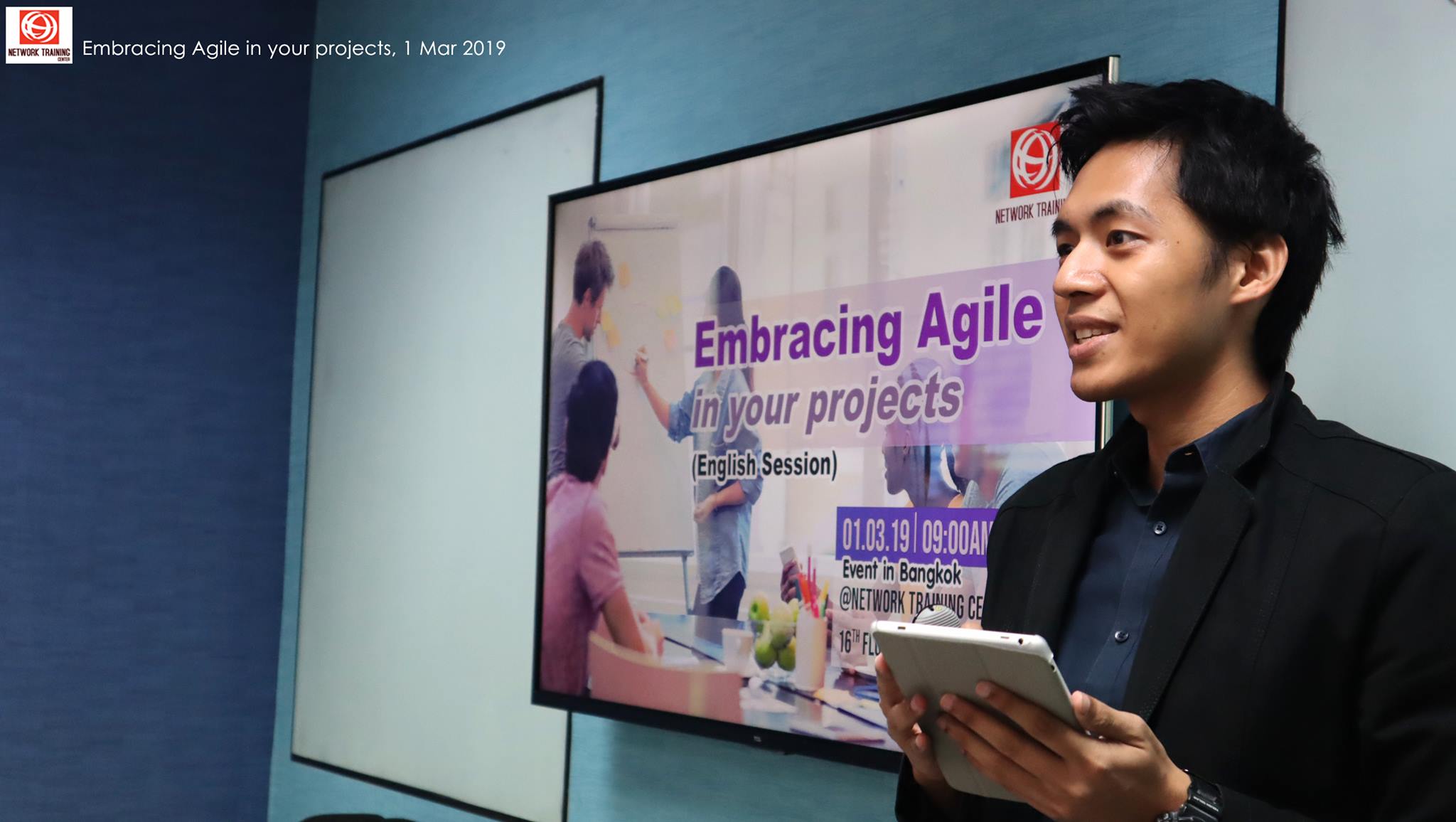 งาน "Embracing Agile in your projects" โดย Mr.Tan Hoon Wee (Project Management specialist, Sapience Consultant) ที่ได้มาร่วมบรรยายให้ความรู้เกี่ยวกับความสำคัญของ "Agile" และ "Scrum" ที่เข้ามามีบทบาทสำคัญเป็นอย่างมาก